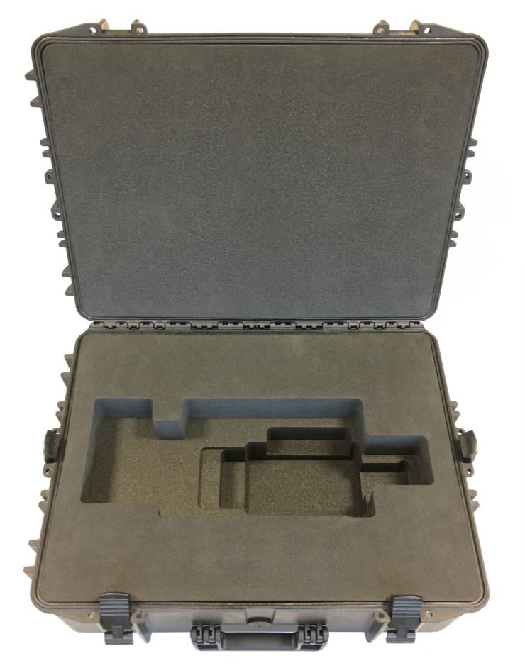 Na het creëren van de uitsparingen in een kofferinterieur volgt de nabewerking. De interieurs worden afgeklopt en schoongeblazen om alle losse schuimdeeltjes te verwijderen. Met behulp van hete lucht worden de open cellen aan de buitenzijde van het kofferinterieur dichtgebrand. Het wateropnamepercentage van het interieur wordt hiermee verder geminimaliseerd. Ook oogt het schuim beter na deze nabehandeling, het oppervlak wordt glanzend. Bij behoefte kunnen we de kofferinterieurs van bepaalde schuimsoorten (LD24, LD45 en XPE) ook geschikt maken voor gebruik in clean-rooms. In onze stofvrije ruimte kunnen we de interieurs stofvrij verpakken.